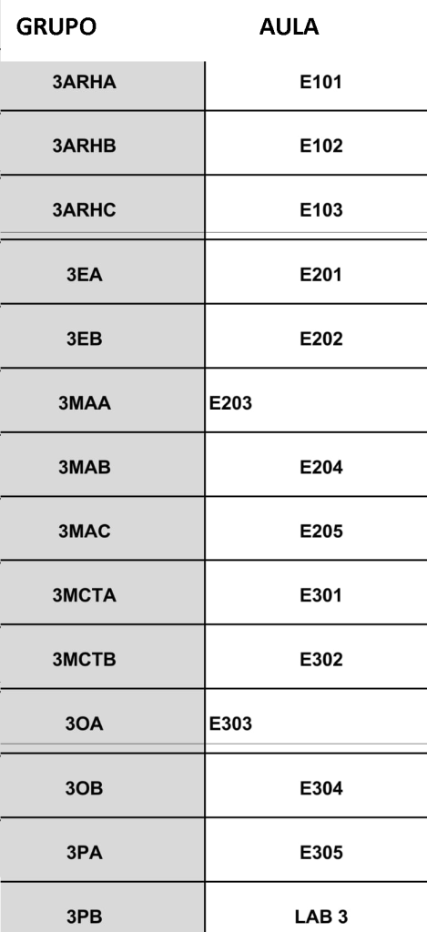 Ubicación de aulas para entrega de boletas por grupo, 19:00 horas. 12-octubre-2023