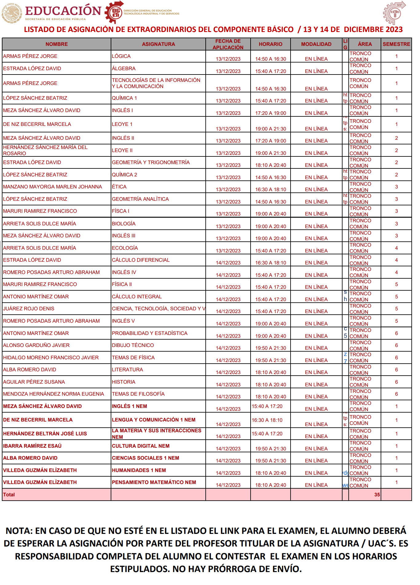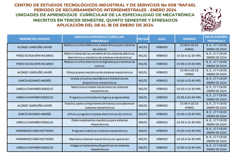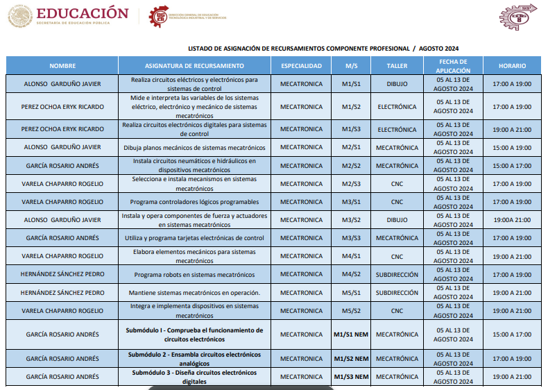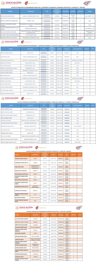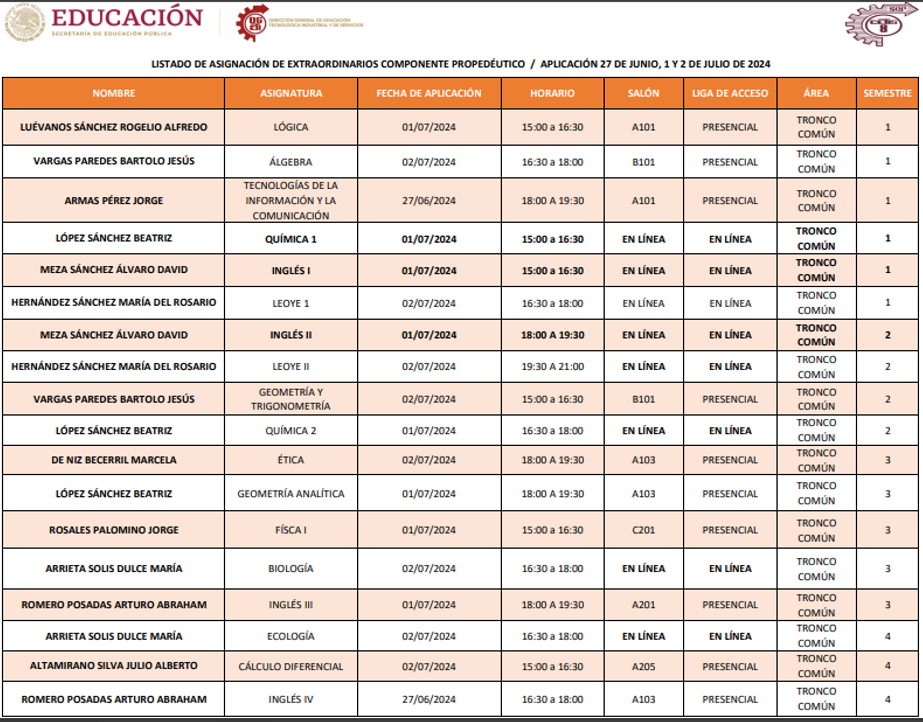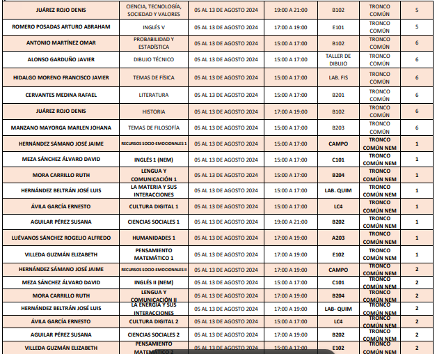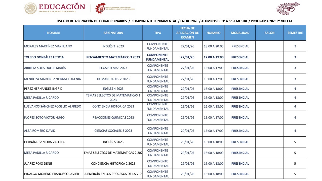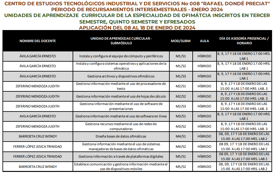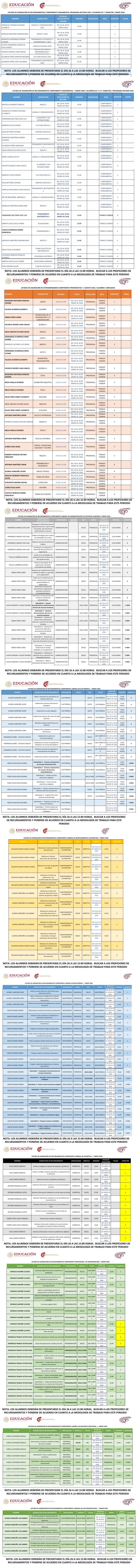 NOTA: LOS ALUMNOS DEBERÁN DE ESTAR AL PENDIENTE DE LAS INSTRUCCIONES QUE DEN LOS PROFESORES ASIGNADOS. LAS CLASES PUEDEN SER EN MODALIDAD PRESENCIAL, HÍBRIDA O EN LÍNEA VÍA CLASSROOM.