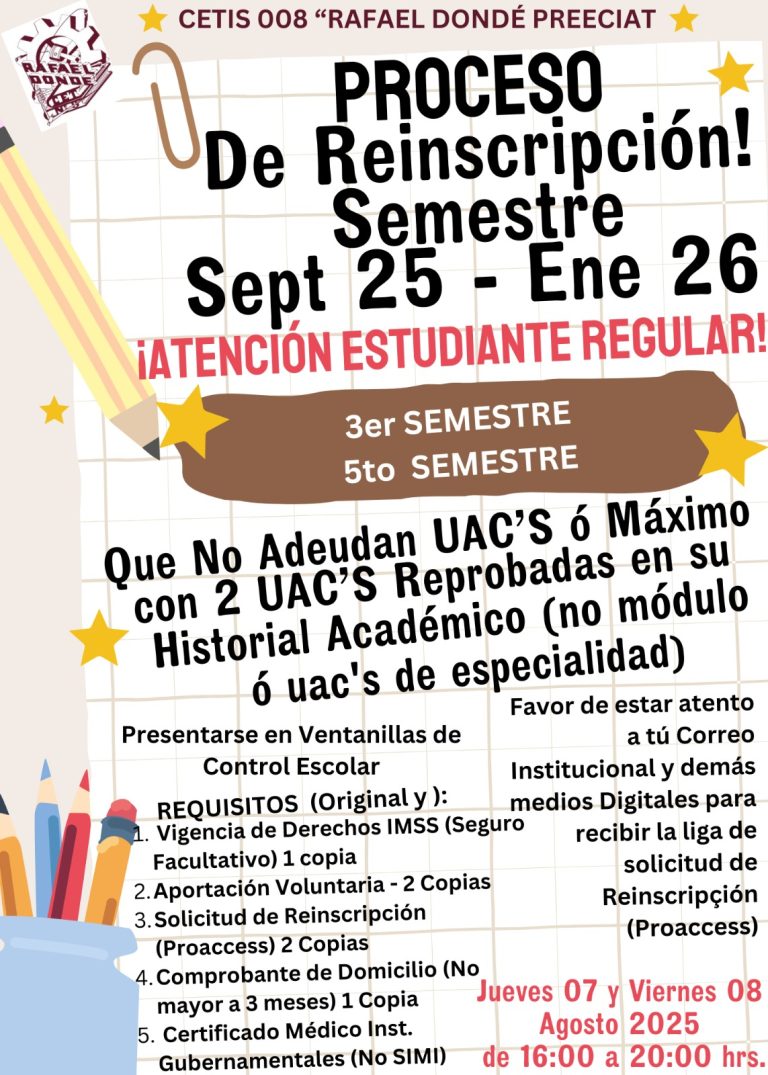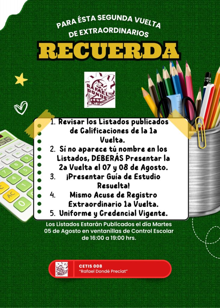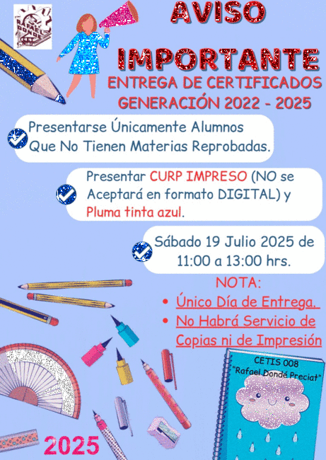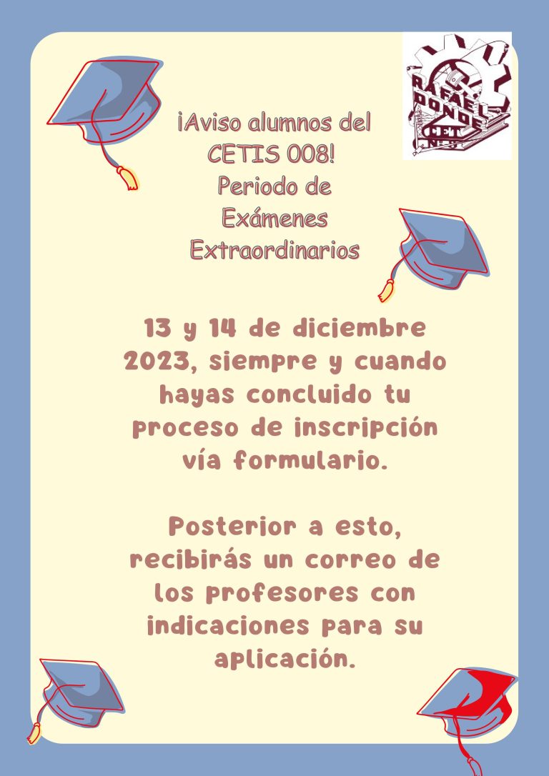Se convoca a los Egresados del Cetis 008 “Rafael Dondé Preciat” de las especialidades de Administración de Recursos Humanos, Electrónica, Mantenimiento Automotriz, Ofimática y Programación que estén interesados en tramitar su Título de Técnico.