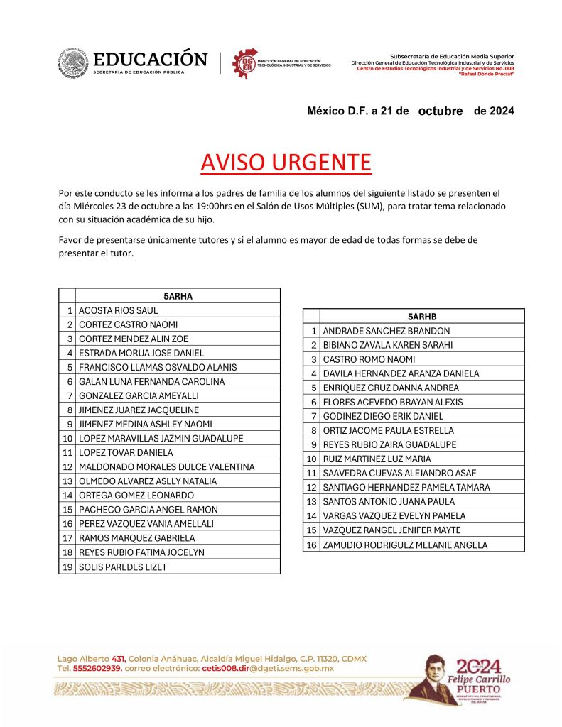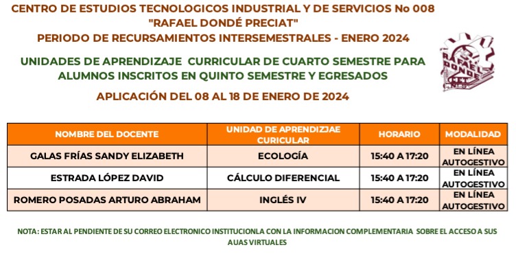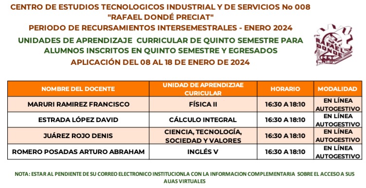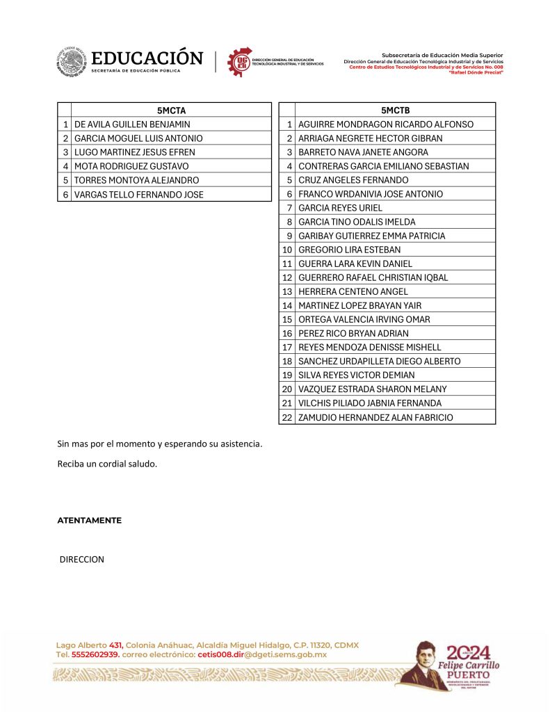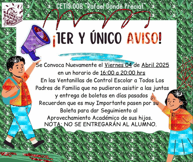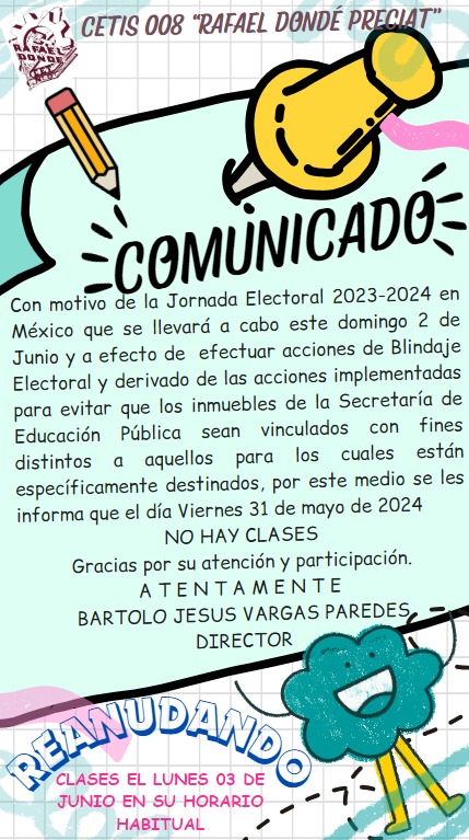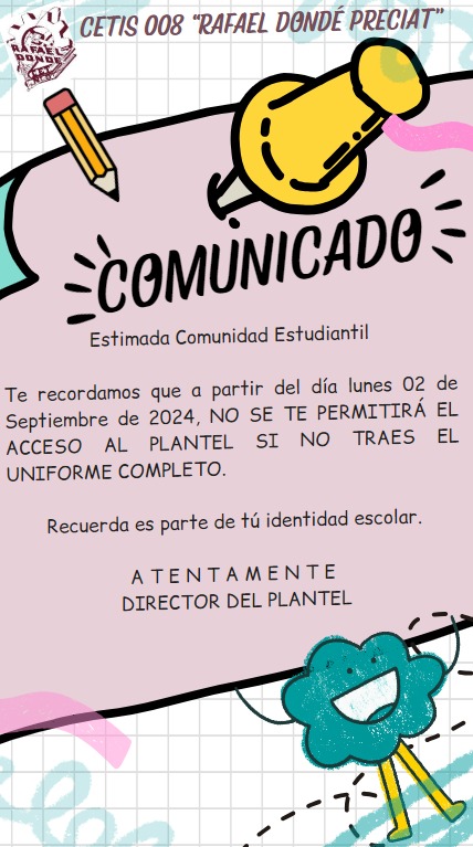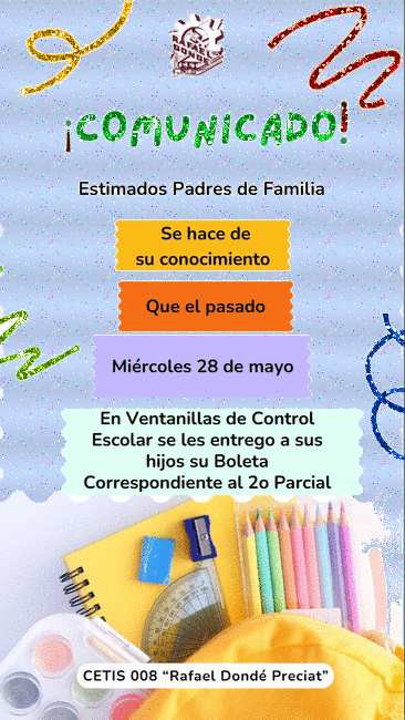 Estimada Comunidad del CETis 008 "Rafael Dondé Preciat"