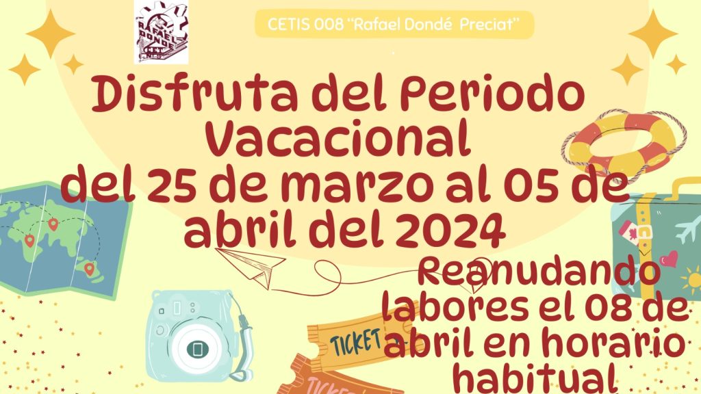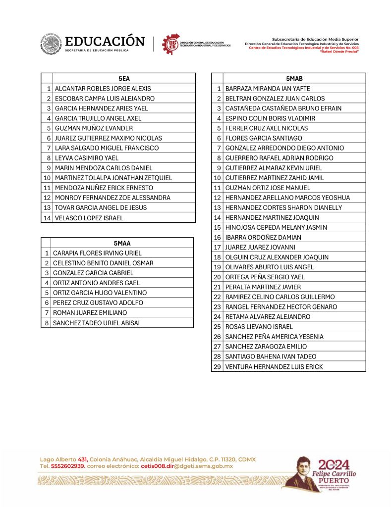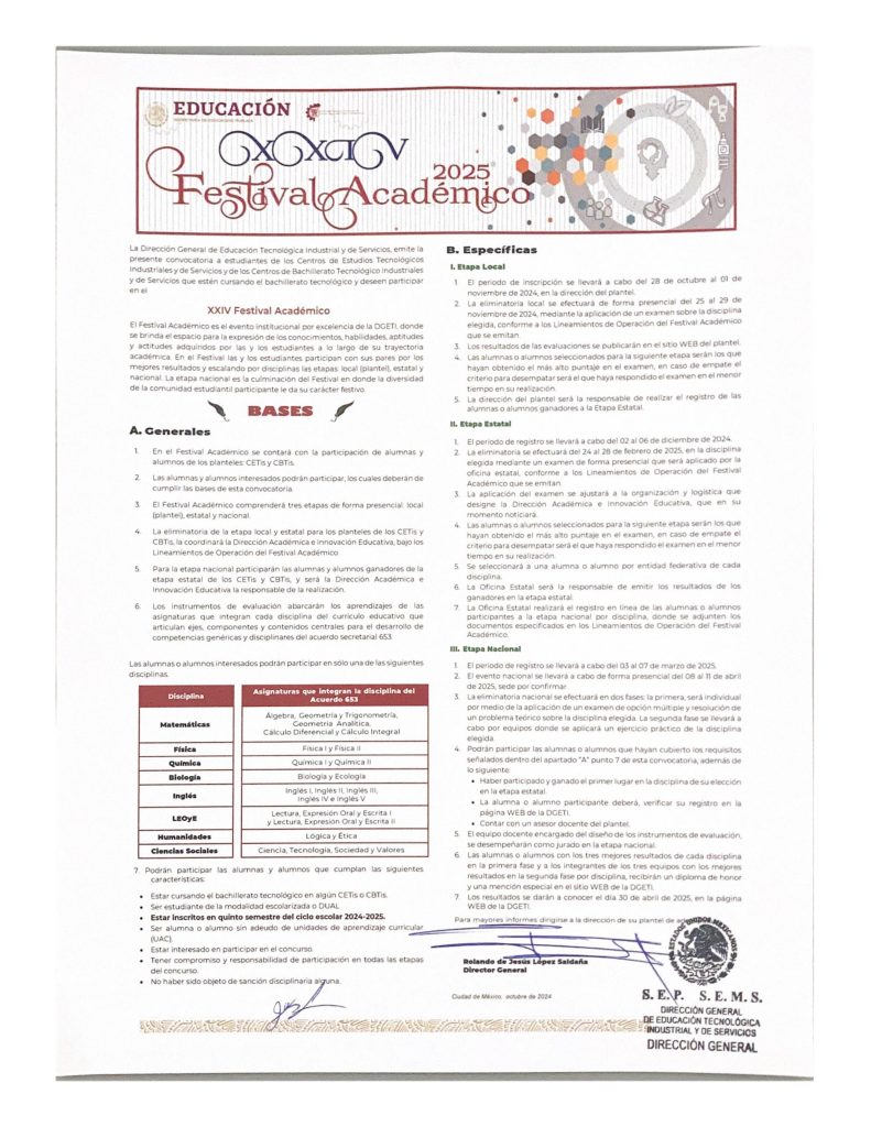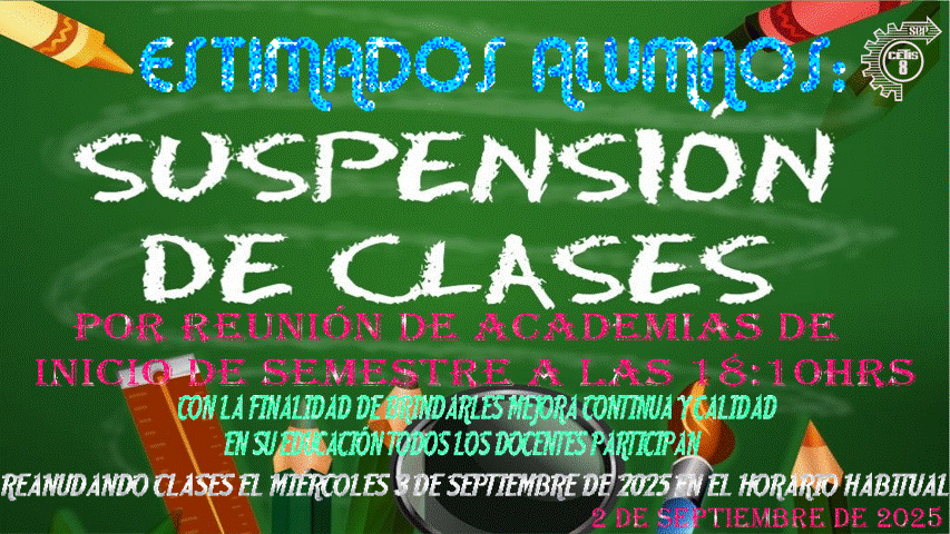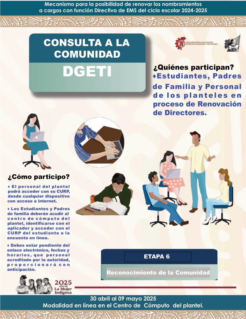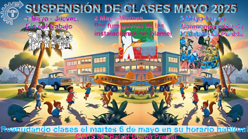 Por este medio se les informa que en cumplimiento con el Calendario de Actividades Escolares de la DGETI correspondiente al segundo semestre del Ciclo Escolar 2023 - 2024, el día miércoles 1o de mayo de 2024 es considerado día inhábil, reanudando labores el próximo jueves 2 de mayo de 2024.