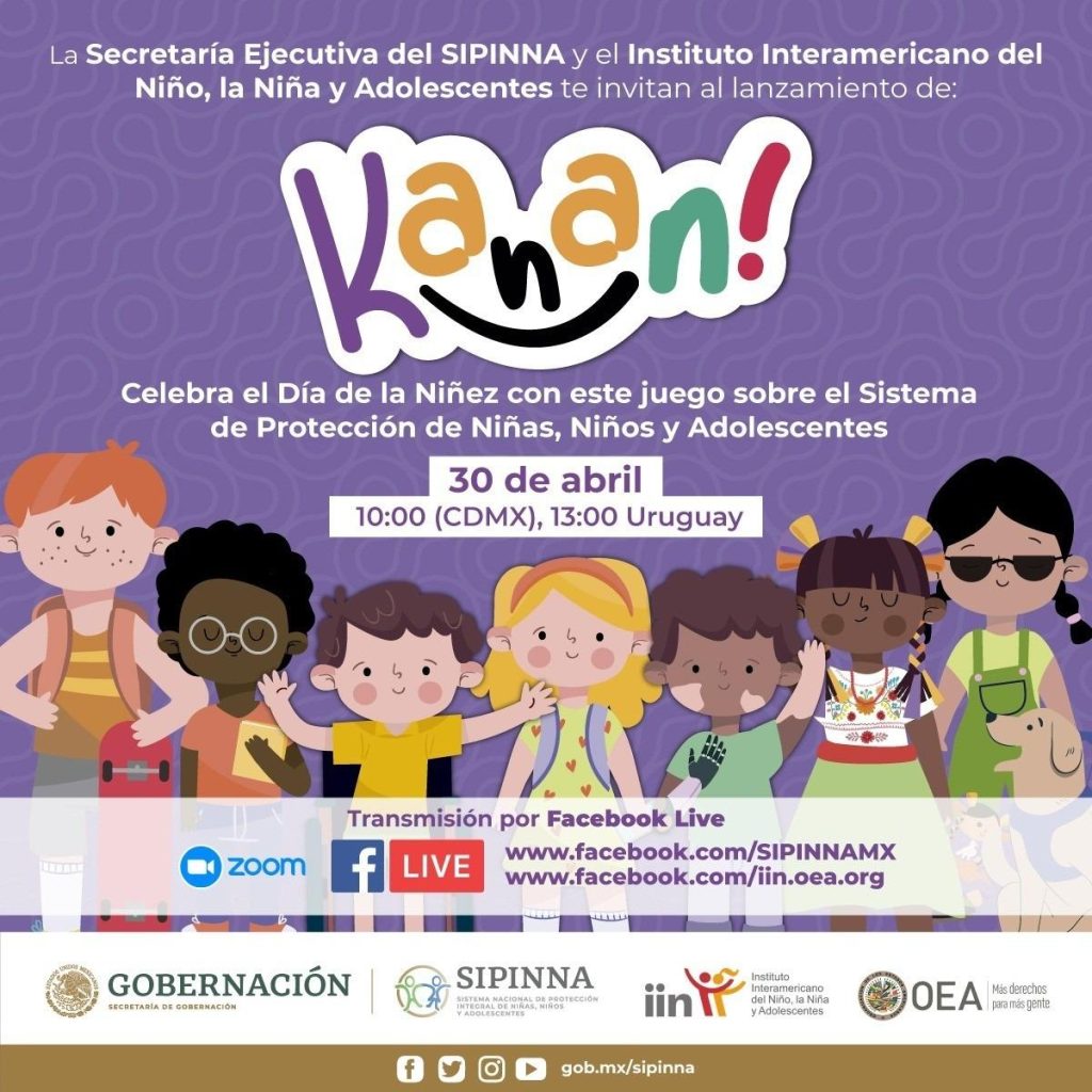 Se les hace una cordial invitación al Webinar de lanzamiento del juego de cartas “KANAN. Sé un guardián de los derechos de niñas, niños y adolescentes”, que llevará a cabo la SE SIPINNA en colaboración con el Instituto Interamericano del Niño, el marco de la celebración del día de la niñez. 10:00 am, a través de Facebook live: www.facebook.com/iin.oea.org