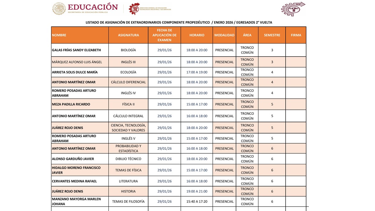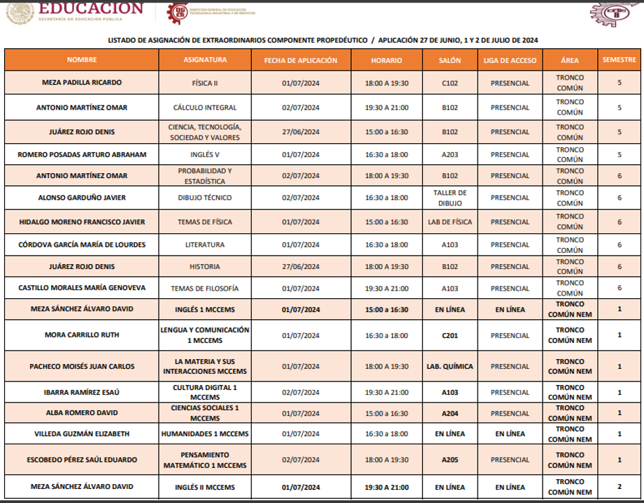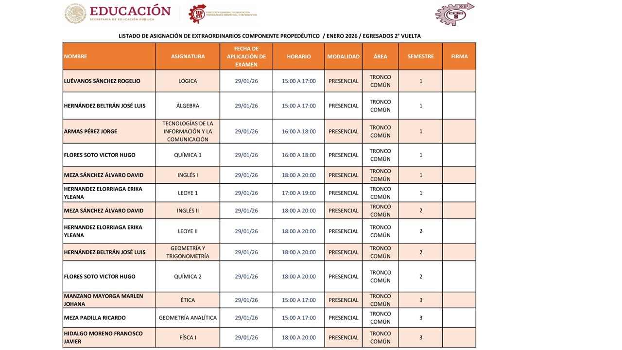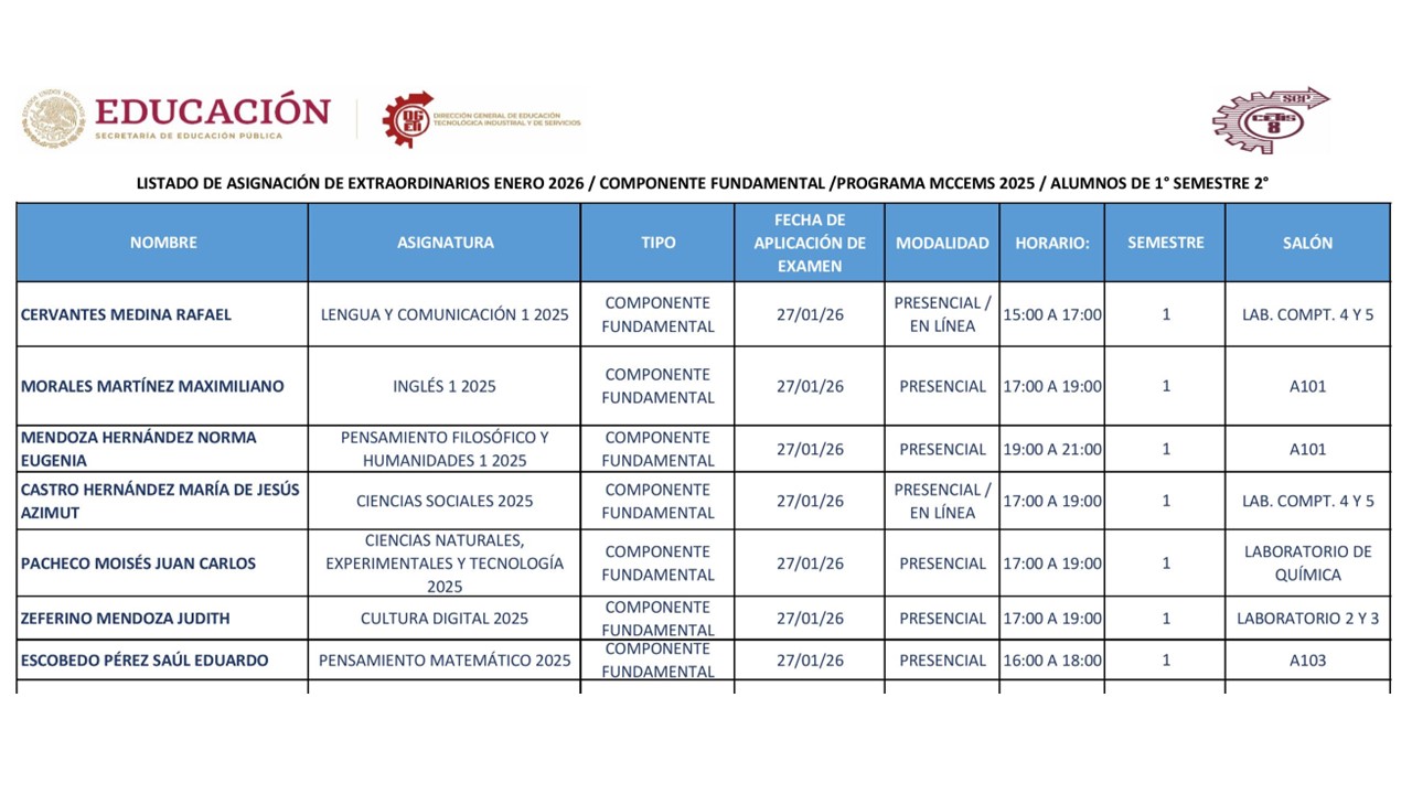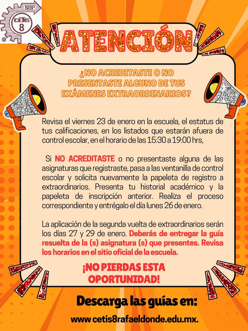 Recuerda que se cerrará el día lunes 11 de diciembre a las 20:00 horas y que sin tú registro no podrás presentar ningún examen extraordinario, pues te recordamos serán en línea.