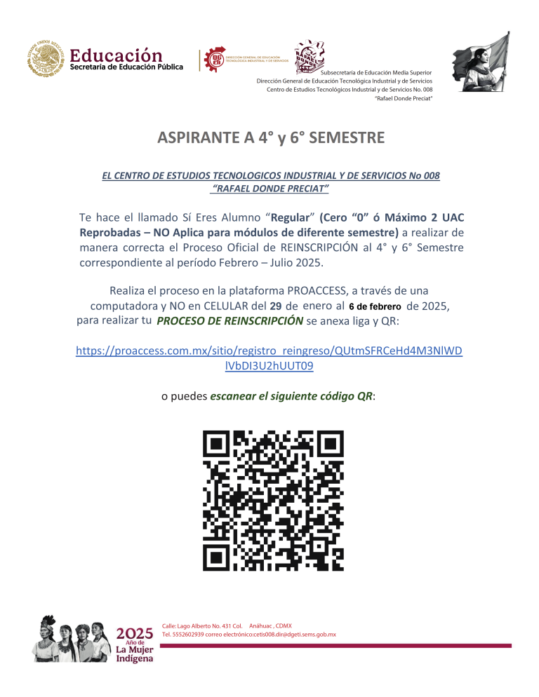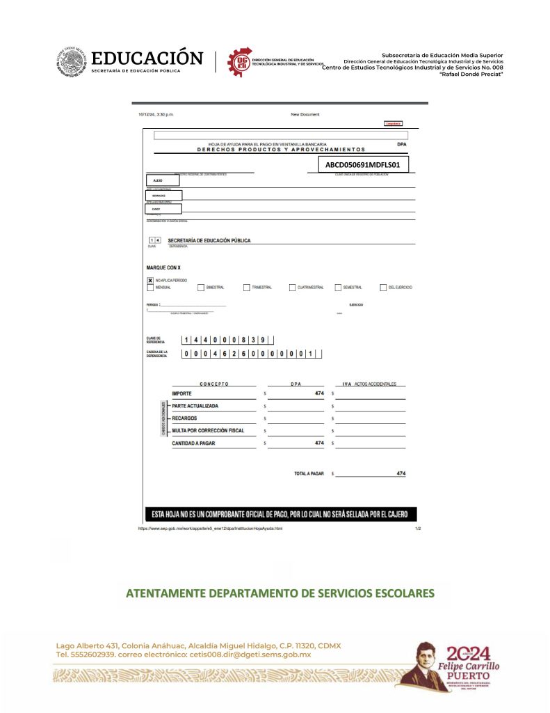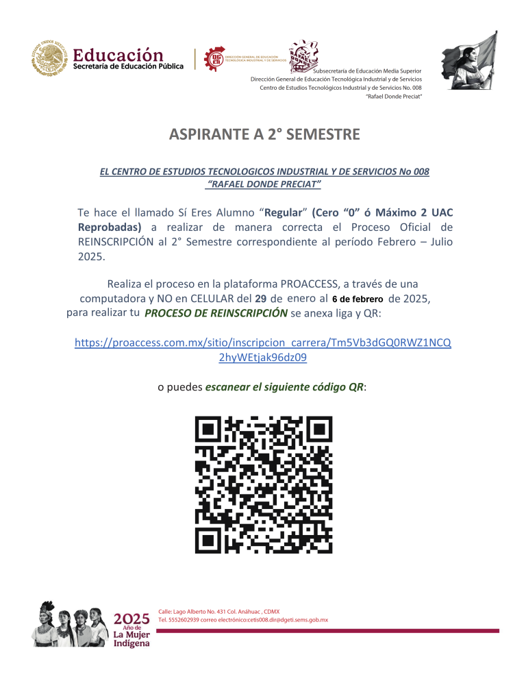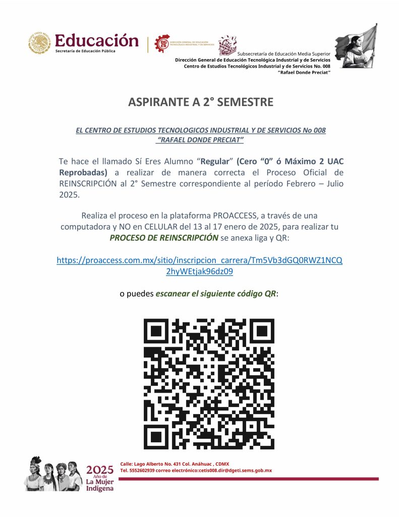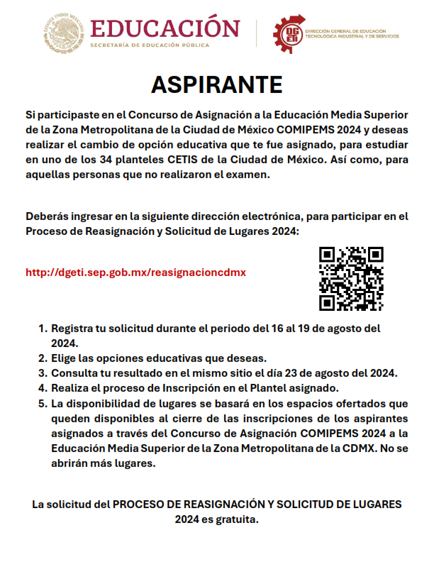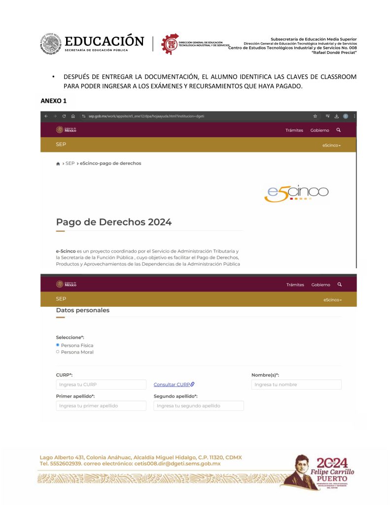 Te invito a que leas todo el comunicado antes de iniciar el proceso, no se contestaran correos, toda duda deberás acudir al plantel el 7 de agosto, en un horario de 14:50 a 20:30 horas.